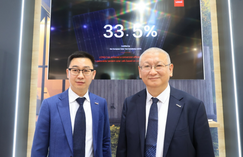 6月14日,隆基綠能在Intersolar Europe 2023上宣布實(shí)現(xiàn)了晶硅-鈣鈦礦疊層電池33.5%的轉(zhuǎn)換效率