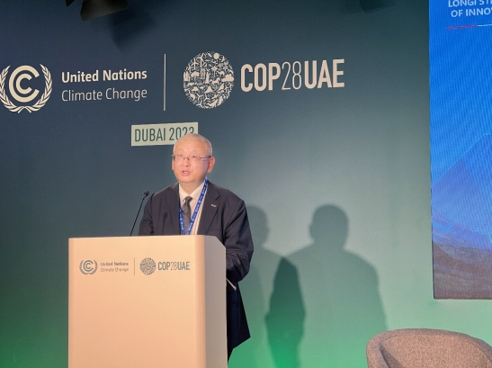 隆基綠能創(chuàng)始人、總裁李振國(guó)在COP28聯(lián)合國(guó)新聞直播間發(fā)表演講