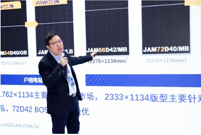 為幫助參展觀眾深入了解晶澳科技產品,晶澳科技專家在展會現(xiàn)場圍繞最新光伏組件產品、五大戶用創(chuàng)新方案產品、儲能設備及光儲一體化解決方案產品、零碳綜合解決方案產品和工商業(yè)一體化解決方案產品等方面分享了技術報告。