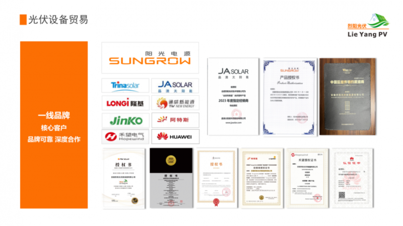 ?公司一直秉承“創(chuàng)新、質(zhì)量、服務(wù)、綠色、環(huán)保”的理念,以全一線品牌產(chǎn)品的光伏貿(mào)易板塊,為客戶提供各大品牌的光伏組件、光伏逆變器、并網(wǎng)箱、等光伏配件,不斷推進(jìn)服務(wù)創(chuàng)新和產(chǎn)品升級(jí),依靠品牌可靠、深度合作打動(dòng)核心客戶;