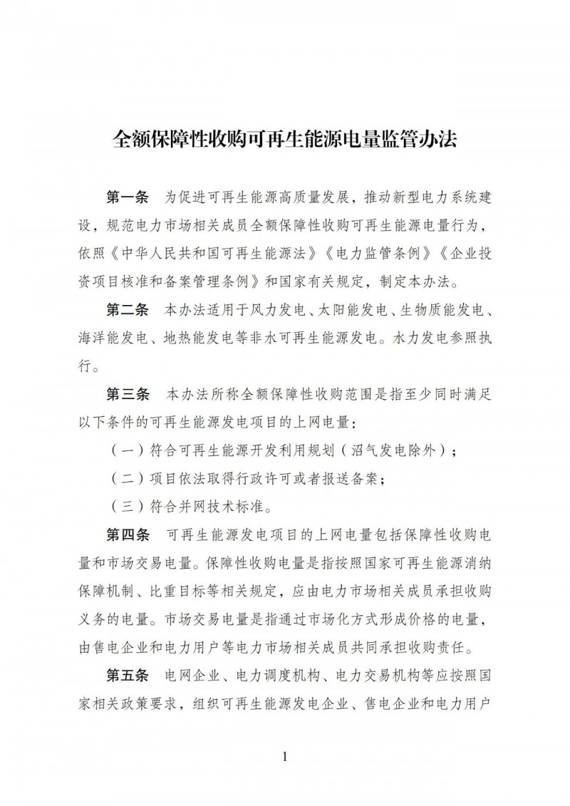 本辦法自2024年4月1日起施行,2007年9月1日起施行的《電網(wǎng)企業(yè)全額收購可再生能源電量監(jiān)管辦法》(原國家電力監(jiān)管委員會(huì)令第25號(hào))同時(shí)廢止。