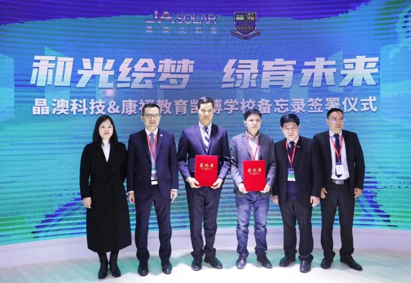 展會(huì)期間,晶澳科技與康福國(guó)際學(xué)校凱博學(xué)校簽訂備忘錄,將進(jìn)一步推動(dòng)雙方在產(chǎn)學(xué)領(lǐng)域的深度交流與融合,為清潔能源行業(yè)的綠色發(fā)展注入新的活力。