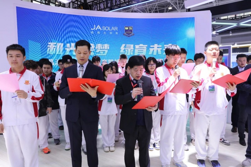 在簽訂備忘錄后,來自晶澳科技與康福國(guó)際學(xué)校凱博學(xué)校的代表共同誦讀了《全球綠色工商低碳發(fā)展倡議書》,以鏗鏘有力的聲音向全社會(huì)傳遞出雙方對(duì)清潔能源和可持續(xù)發(fā)展的堅(jiān)定信念。