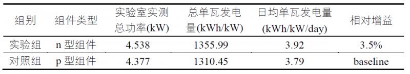 圖2 n型組件和p型組件單瓦發(fā)電量對比數(shù)據(jù)