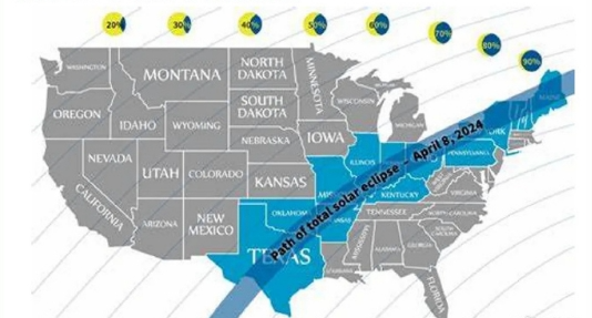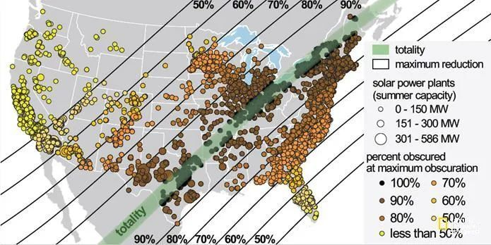 美國公共事業(yè)級的太陽能發(fā)電站和4月8日日食路徑
