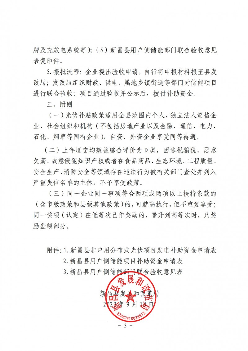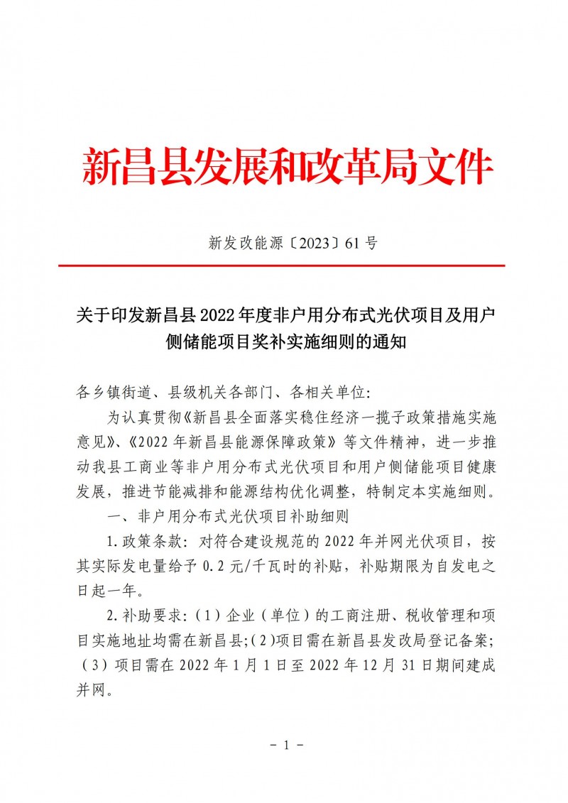 附件:關(guān)于印發(fā)新昌縣2022年度非戶用分布式光伏項目及用戶側(cè)儲能項目獎補(bǔ)實(shí)施細(xì)則的通知