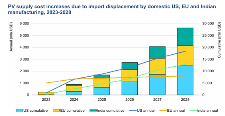 雖然光伏供應(yīng)鏈多樣化對(duì)于減少某些地區(qū)的過(guò)度集中是必要的措施,但這也給政府和消費(fèi)者帶來(lái)了額外的成本。