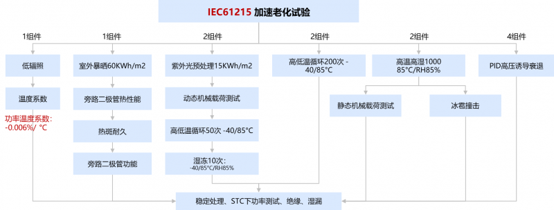為了進(jìn)一步驗(yàn)證產(chǎn)品穩(wěn)定性,企業(yè)還會(huì)展開(kāi)更嚴(yán)格的“強(qiáng)化版IEC61215測(cè)試”,即對(duì)IEC61215中的關(guān)鍵測(cè)試項(xiàng)DH1000、TC200進(jìn)行加嚴(yán)測(cè)試,延長(zhǎng)兩個(gè)測(cè)試序列的測(cè)試時(shí)間和周期,這是晶硅光伏行業(yè)中產(chǎn)品性能測(cè)試的常用手段。極電光能對(duì)所產(chǎn)出的鈣鈦礦組件進(jìn)行了DH2000、TC400測(cè)試(即比IEC61215標(biāo)準(zhǔn)加嚴(yán)一倍)。