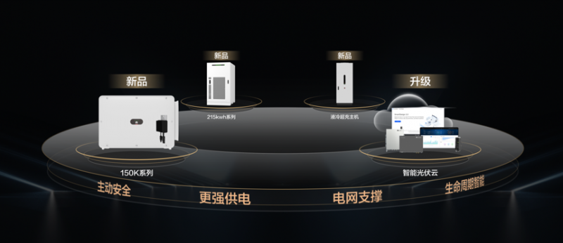 此次重點推出了150K更大功率工商業(yè)逆變器、行業(yè)首款風液智冷工商業(yè)儲能、360kW/480kW液冷超充主機、全新升級的智能光伏云等。