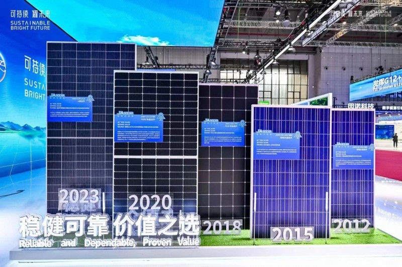 自2010年完成組件業(yè)務(wù)布局以來,晶澳科技堅(jiān)持以產(chǎn)品質(zhì)量開拓市場(chǎng),進(jìn)而成就品牌。在本次展會(huì)上,晶澳科技以十年時(shí)間為軸,展示了不同年份組件所支持的項(xiàng)目案例,以事實(shí)彰顯了始終如一的可靠性。