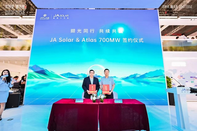 首先,拉丁美洲最大的太陽(yáng)能開發(fā)商和投資者之一Atlas與晶澳科技簽署了總規(guī)模達(dá)700MW的組件供貨協(xié)議,其中包括供貨200MW組件的協(xié)議,以及圍繞項(xiàng)目的500MW戰(zhàn)略合作框架協(xié)議。Atlas采購(gòu)主管Patrick Valentin 與晶澳科技副總裁、全球營(yíng)銷中心總經(jīng)理祝道誠(chéng)分別代表雙方簽字。