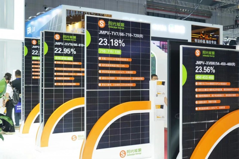陽(yáng)光能源作為一家專業(yè)化光伏組件制造商,已連續(xù)多年參與上海展會(huì)。本屆展會(huì),陽(yáng)光能源在5.2號(hào)館B150號(hào)展臺(tái)上進(jìn)行了Giga-N系列高效組件的全景展示,展出的6款N型TOPCon組件能夠滿足大型地面電站、工商業(yè)屋頂、分布式屋頂?shù)榷嘣瘧?yīng)用場(chǎng)景需求,兼具高功率、高效率和高發(fā)電量等多重優(yōu)勢(shì),其中一款TOPCon疊加0BB技術(shù)的組件獲得了眾多觀眾的駐足了解。此外,同步展出的還有一款新品N型HJT組件,也是本次展品中轉(zhuǎn)換效率最高的一款產(chǎn)品,效率可達(dá)23.18%,最大功率可以達(dá)到720W。