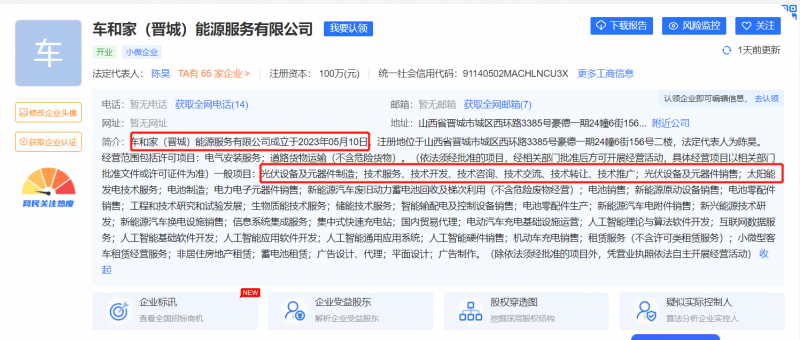 2023年5月10日,車和家(晉城)能源服務(wù)有限公司成立,根據(jù)愛企查官網(wǎng)顯示,其經(jīng)營范圍包括:光伏設(shè)備及元器件制造、太陽能發(fā)電服務(wù)等。車和家(晉城)能源服務(wù)有限公司是北京車和家能源服務(wù)有限公司的子公司,理想汽車作為車和家汽車公司旗下產(chǎn)品,此次在晉城注冊光伏能源服務(wù)公司,預(yù)示著理想汽車正式進(jìn)軍光伏行業(yè)。