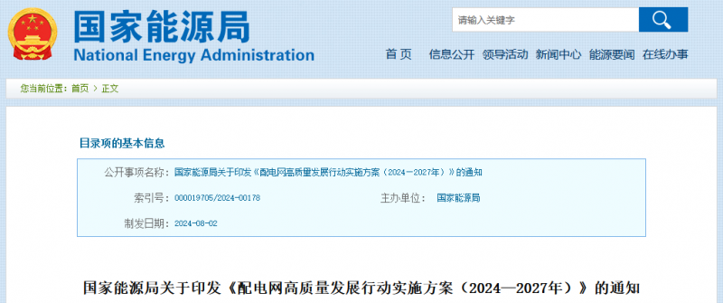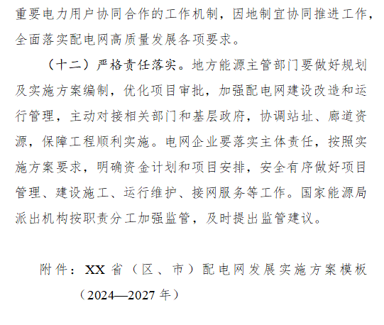 國家能源局關于印發(fā)《配電網(wǎng)高質(zhì)量發(fā)展行動實施方案(2024—2027年)》的通知