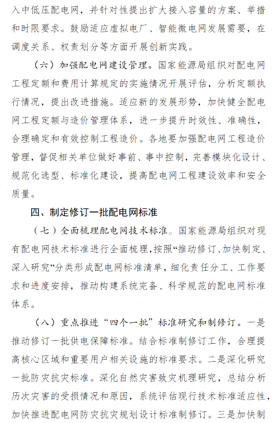 制定修訂一批配電網(wǎng)標準。加快制修訂一批新型主體接入配電網(wǎng)標準。規(guī)范新型主體接網(wǎng)的技術要求,促進配電網(wǎng)和新型主體融合發(fā)展。適時推出一批分布式智能電網(wǎng)標準。適應分布式智能電網(wǎng)發(fā)展需求,加強規(guī)劃建設、調(diào)度控制、信息安全等方面技術標準的制修訂。