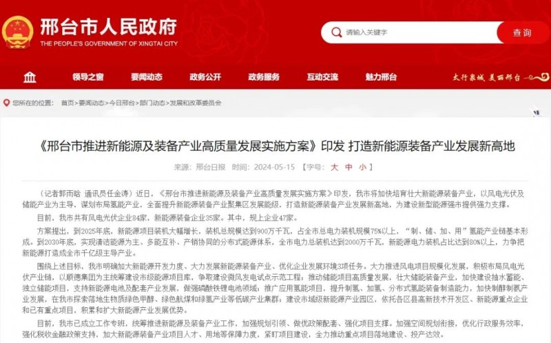 政策利好——2024年5月,《邢臺市推進(jìn)新能源及裝備產(chǎn)業(yè)高質(zhì)量發(fā)展實施方案》印發(fā),邢臺市將加快培育壯大新能源裝備產(chǎn)業(yè),以風(fēng)電光伏及儲能產(chǎn)業(yè)為主導(dǎo),謀劃布局氫能產(chǎn)業(yè),全面提升新能源裝備產(chǎn)業(yè)聚集區(qū)發(fā)展能級,打造新能源裝備產(chǎn)業(yè)發(fā)展新高地,為建設(shè)新型能源強(qiáng)市提供強(qiáng)力支撐。