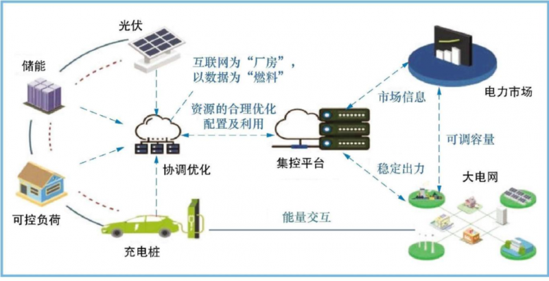 虛擬電廠是一種通過(guò)信息技術(shù)和軟件系統(tǒng),實(shí)現(xiàn)分布式電源、儲(chǔ)能、可控負(fù)荷、電動(dòng)汽車等多種分布式資源聚合和協(xié)同優(yōu)化的協(xié)調(diào)管理系統(tǒng)。通過(guò)虛擬電廠,可提升電力保供和新能源就地消納能力,助力構(gòu)建新型電力系統(tǒng)。