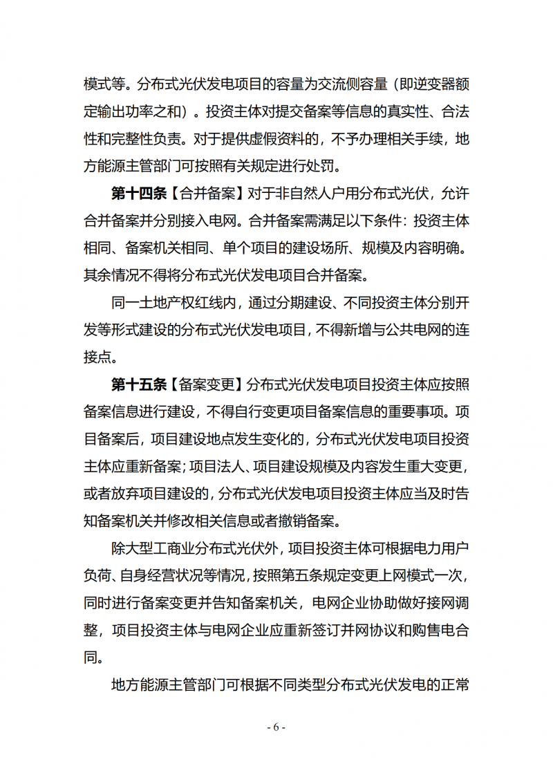 非自然人投資開發(fā)建設的分布式光伏發(fā)電項目不得以自然人名義備案,本辦法印發(fā)前已由自然人備案的,可不作備案主體變更,但投資主體應主動向備案機關和電網企業(yè)告知相關信息,明確承擔項目運行維護的主體及相應法律責任。
