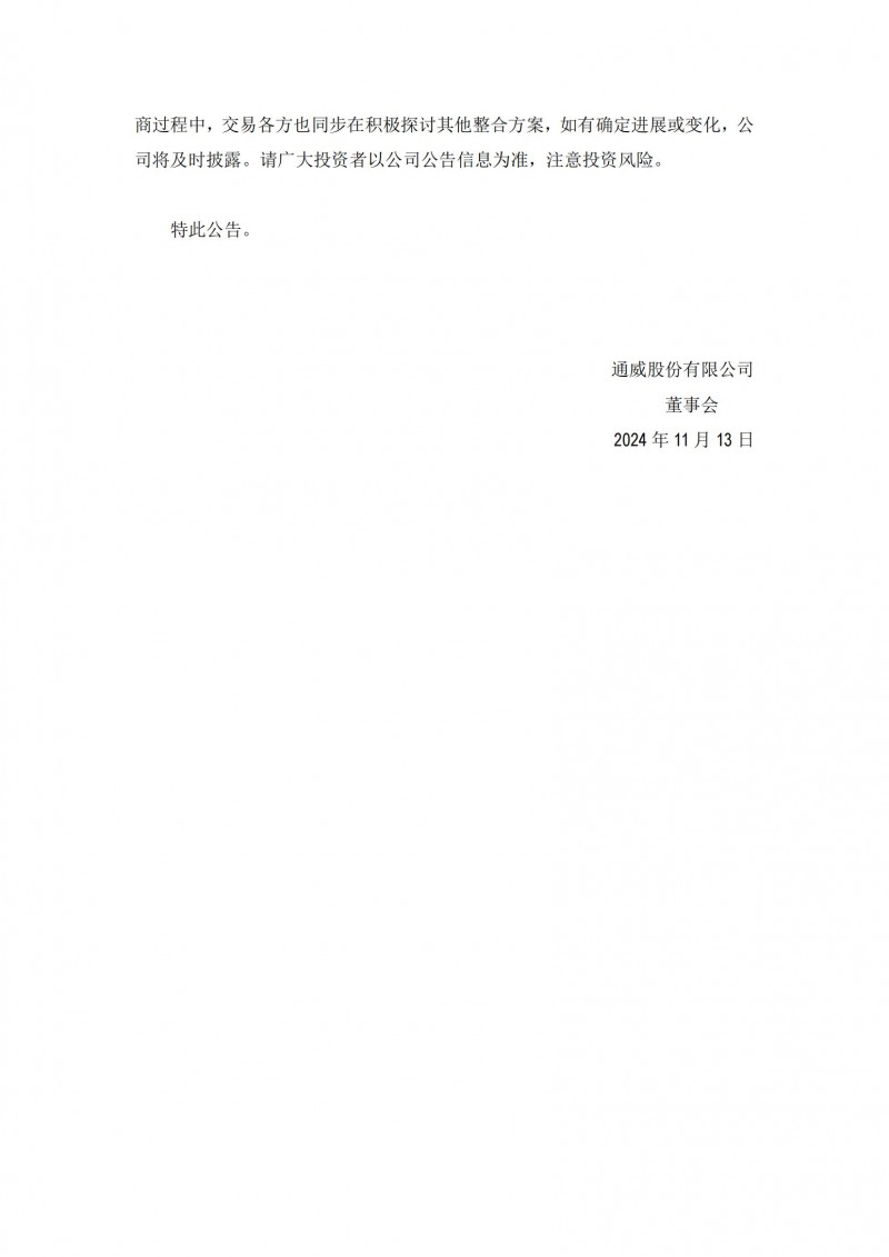 通威股份在公告中表示,雙方協(xié)議簽署后,公司立即組織業(yè)務(wù)團(tuán)隊(duì)及相關(guān)中介機(jī)構(gòu)對(duì)潤陽股份進(jìn)行全面盡職調(diào)查以及審計(jì)、評(píng)估工作。截至目前,相關(guān)工作尚在進(jìn)行中,交易各方仍在持續(xù)就交易相關(guān)事項(xiàng)進(jìn)行磋商,不排除原交易方案可能存在調(diào)整或終止的風(fēng)險(xiǎn);磋商過程中,交易各方也同步在積極探討其他整合方案,如有確定進(jìn)展或變化,公司將及時(shí)披露。