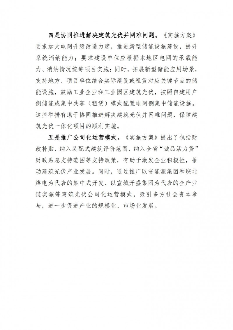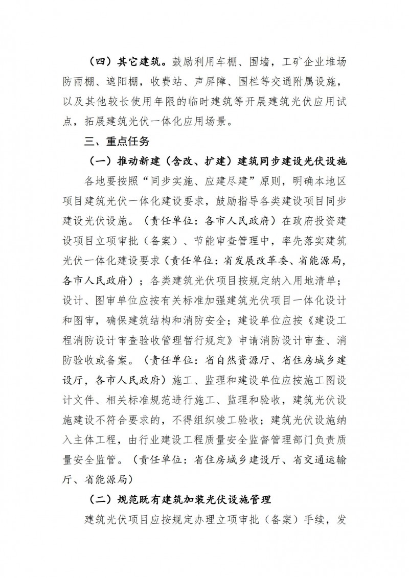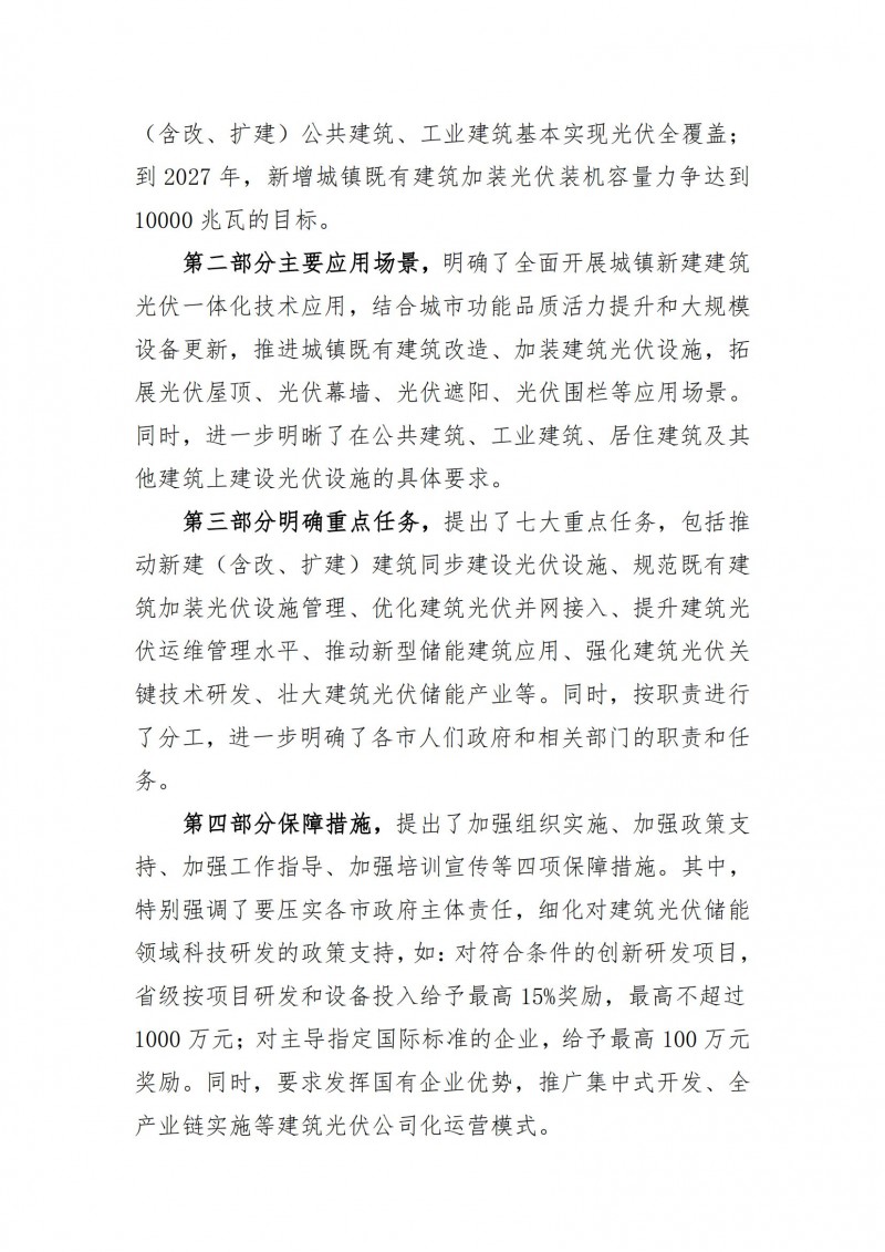 2025年起,建筑光伏納入全省新能源發(fā)展總體規(guī)模,統(tǒng)籌開發(fā)利用,政府投資具備條件的城鎮(zhèn)新建(含改、擴建)公共建筑、工業(yè)建筑基本實現(xiàn)光伏全覆蓋,其他建筑光伏能建盡建,基本形成政府引導、企業(yè)參與、市場運作、多方共贏的建筑光伏開發(fā)建設運營模式。