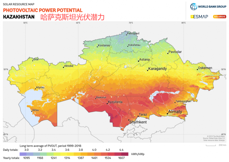 地理條件:作為中亞地區(qū)最大的國家,哈薩克斯坦也是該地區(qū)最大的能源生產(chǎn)國,擁有豐富的太陽能資源。尤其是南部和東南部地區(qū),如阿拉木圖(Almaty)和奇姆肯特(Shymkent),年均太陽輻射量可達1500–1700kWh/m²,是全球日照最充足的地區(qū)之一。豐富的輻射量有利于光伏發(fā)電,能夠為大規(guī)模的光伏電站提供穩(wěn)定的電力來源。