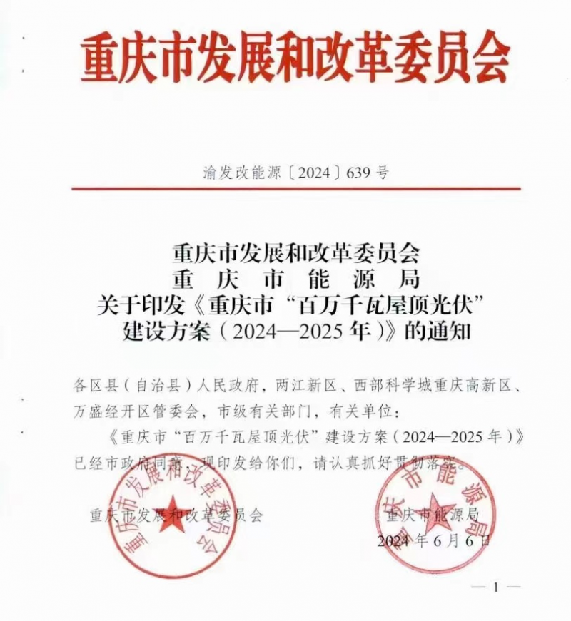 2024年6月,《重慶市“百萬千瓦屋頂光伏”建設(shè)方案(2024-2025年)》橫空出世,提出從2024年5月~2025年7月,計(jì)劃新增屋頂光伏超100萬千瓦,累計(jì)達(dá)200萬千瓦,無疑為重慶分布式光伏發(fā)展注入了一劑“強(qiáng)心針”。