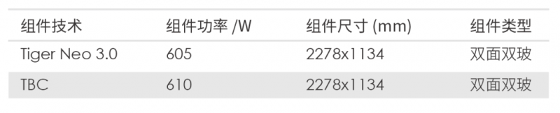 此次測試安裝使用了兩組不同類型的組件:晶科TOPCon技術(shù)TigerNeo3.0組件與其他廠商的TBC型組件,每個組串均為16塊雙面組件,對比電站安裝角度為33°,地面類型為草地,組件底部離地距離1m。希望通過測試能夠更深入地了解這兩種組件在不同典型氣候的應(yīng)用表現(xiàn),為客戶電站選型提供幫助。