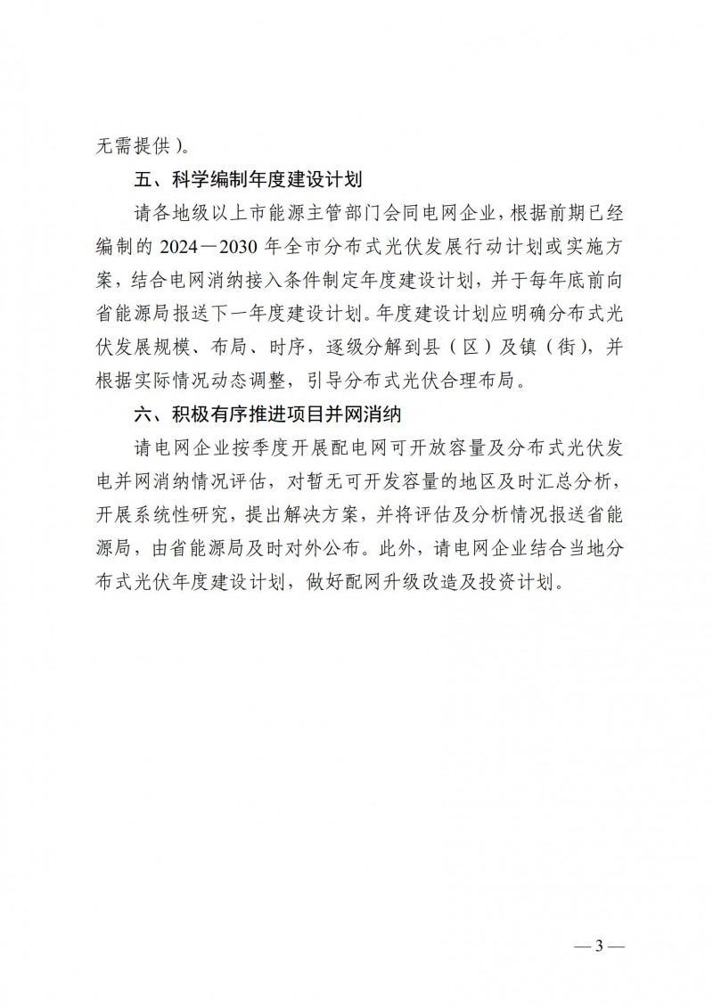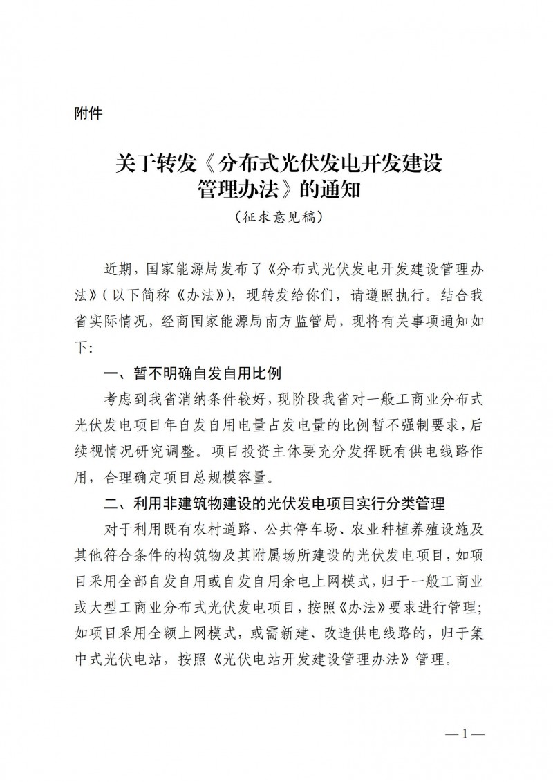 暫不明確自發(fā)自用比例:考慮到我省消納條件較好,現(xiàn)階段我省對一般工商業(yè)分布式光伏發(fā)電項目年自發(fā)自用電量占發(fā)電量的比例暫不強制要求,后續(xù)視情況研究調(diào)整。項目投資主體要充分發(fā)揮既有供電線路作用,合理確定項目總規(guī)模容量。
