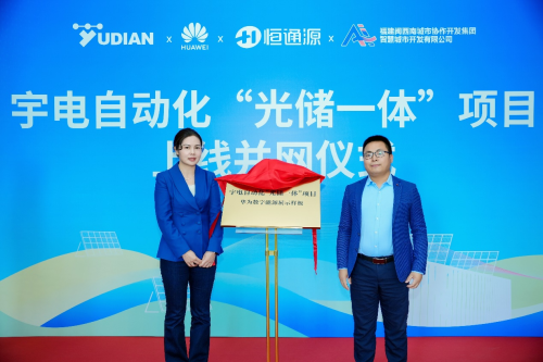 隨后,宇電“光儲一體”項目成功揭牌,這也標志著華為全國首個企業(yè)并離網(wǎng)儲能標桿項目順利落地宇電溫控科技產(chǎn)業(yè)園。