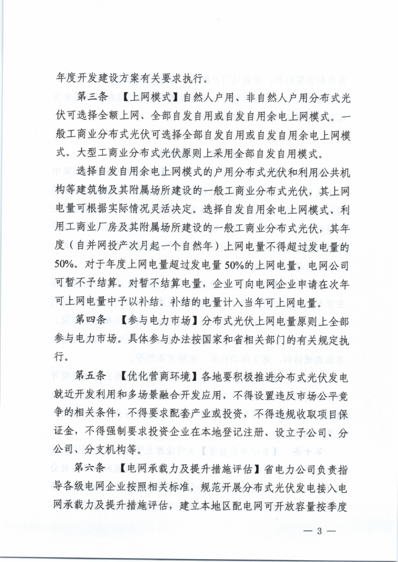 一般工商業(yè)光伏年度上網(wǎng)電量不得超過發(fā)電量的50%,對(duì)于年度上網(wǎng)電量超過50%的電量電網(wǎng)公司可暫不予結(jié)算,企業(yè)可申請(qǐng)?jiān)诖文昕缮暇W(wǎng)電量中予以補(bǔ)結(jié),補(bǔ)結(jié)電量納入當(dāng)年可上網(wǎng)電量。此外,分布式光伏上網(wǎng)電量原則上全部參與電力市場(chǎng)。