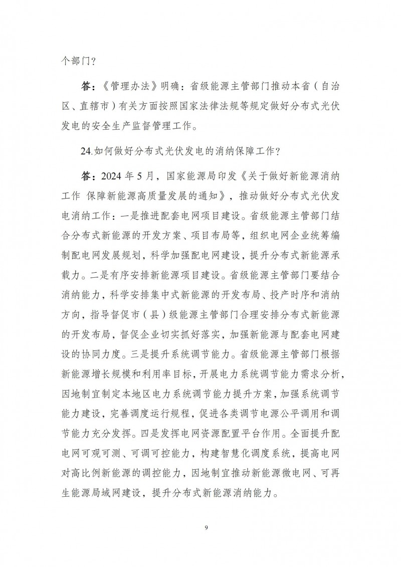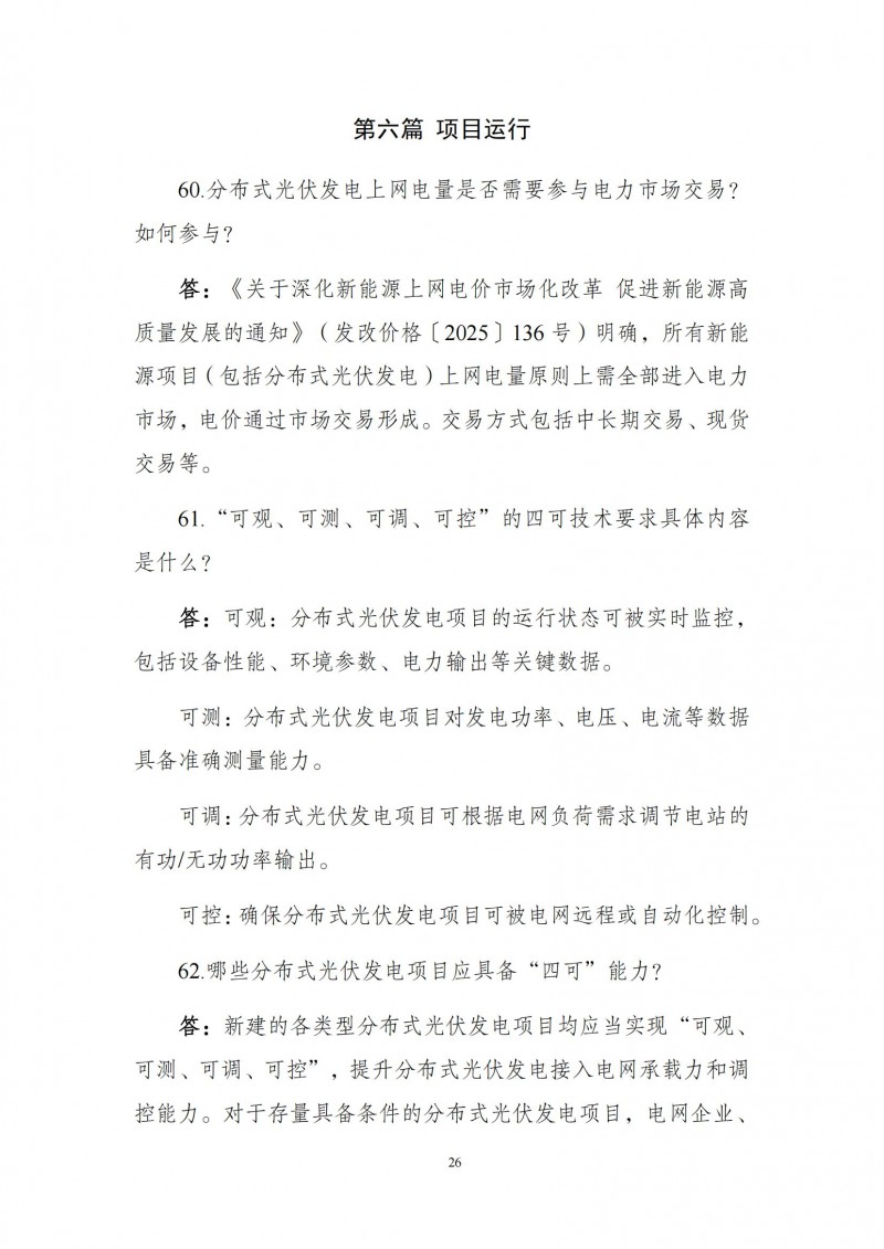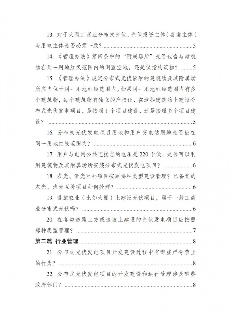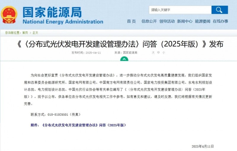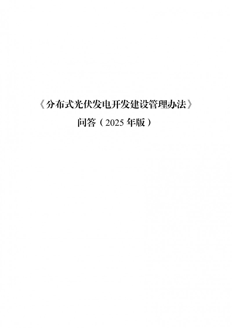 為向社會(huì)更好宣貫《分布式光伏發(fā)電開發(fā)建設(shè)管理辦法》,進(jìn)一步推動(dòng)分布式光伏發(fā)電高質(zhì)量健康發(fā)展,我們組織國(guó)家發(fā)展和改革委員會(huì)能源研究所、國(guó)家電網(wǎng)有限公司、中國(guó)南方電網(wǎng)有限責(zé)任公司、國(guó)家電力投資集團(tuán)有限公司、水電水利規(guī)劃設(shè)計(jì)總院、電力規(guī)劃設(shè)計(jì)總院、中國(guó)光伏行業(yè)協(xié)會(huì)等有關(guān)單位編寫了《〈分布式光伏發(fā)電開發(fā)建設(shè)管理辦法〉問答(2025年版)》?,F(xiàn)予以公布,供各單位在分布式光伏發(fā)電相關(guān)工作中參考。如有意見和建議,請(qǐng)及時(shí)反饋,我們將根據(jù)有關(guān)情況更新完善。