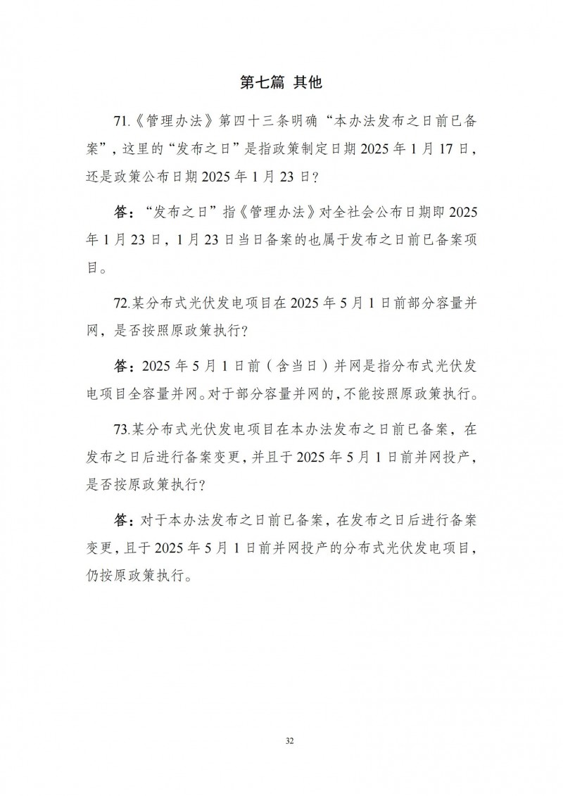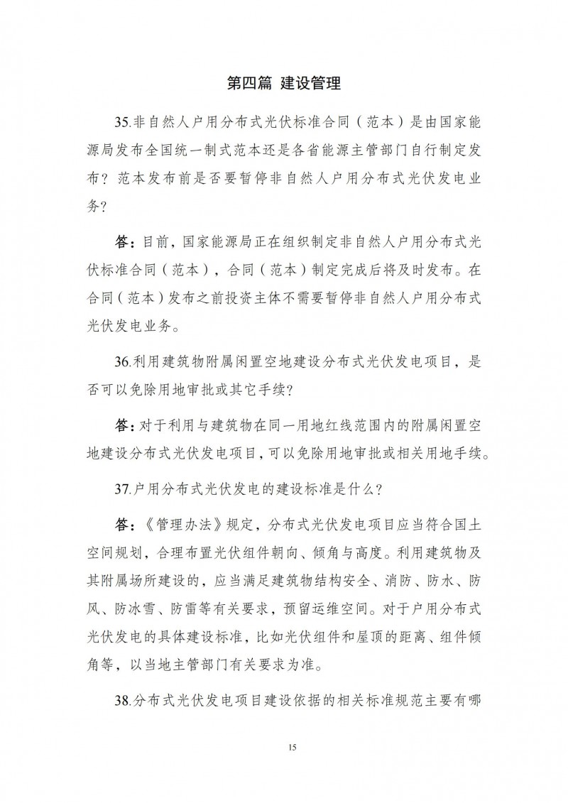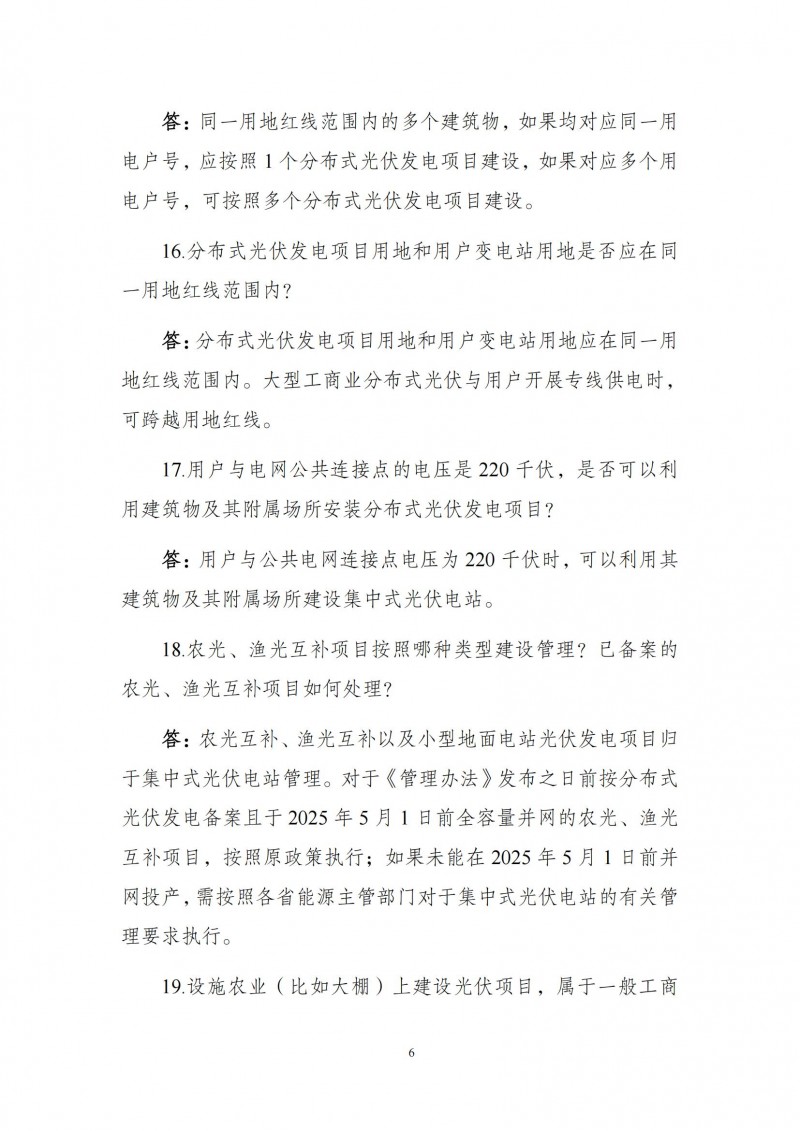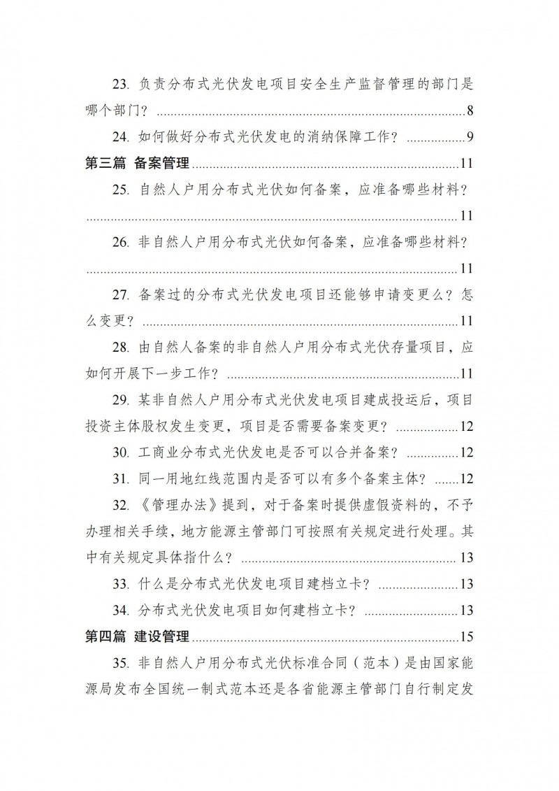 為向社會(huì)更好宣貫《分布式光伏發(fā)電開發(fā)建設(shè)管理辦法》,進(jìn)一步推動(dòng)分布式光伏發(fā)電高質(zhì)量健康發(fā)展,我們組織國(guó)家發(fā)展和改革委員會(huì)能源研究所、國(guó)家電網(wǎng)有限公司、中國(guó)南方電網(wǎng)有限責(zé)任公司、國(guó)家電力投資集團(tuán)有限公司、水電水利規(guī)劃設(shè)計(jì)總院、電力規(guī)劃設(shè)計(jì)總院、中國(guó)光伏行業(yè)協(xié)會(huì)等有關(guān)單位編寫了《〈分布式光伏發(fā)電開發(fā)建設(shè)管理辦法〉問答(2025年版)》?,F(xiàn)予以公布,供各單位在分布式光伏發(fā)電相關(guān)工作中參考。如有意見和建議,請(qǐng)及時(shí)反饋,我們將根據(jù)有關(guān)情況更新完善。