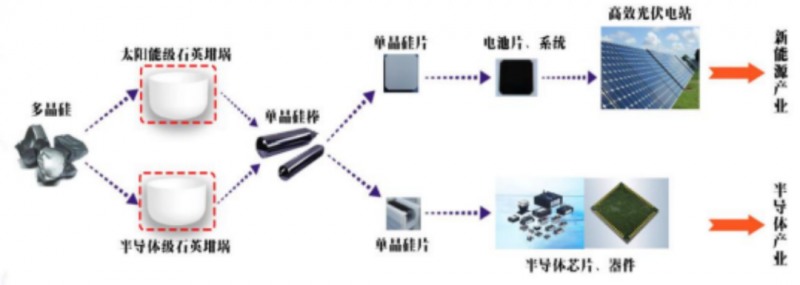 在光伏產(chǎn)業(yè)領域,高純度石英砂是下游硅片制造的“剛需”耗材——石英坩堝的主要原材料。石英坩堝是由高純石英砂高溫制作而成的一種容器,主要用來盛裝熔融硅并制作成晶棒,對單晶硅的生產(chǎn)成本和產(chǎn)品產(chǎn)量質(zhì)量都有直接影響。