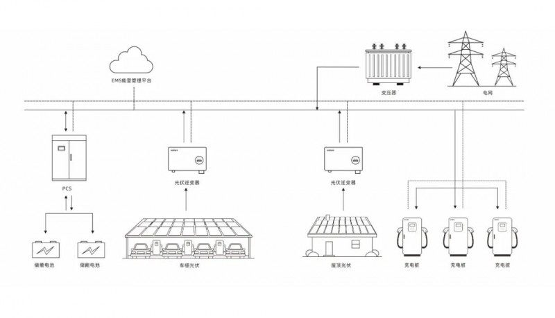 簡單來說就是集成了光伏發(fā)電、儲能系統(tǒng)和充電設施的綜合能源解決方案。光伏發(fā)電系統(tǒng)負責發(fā)電,儲能設備用于將電能適時存儲及放出,而充電站則為電動汽車或其他設備提供充電服務。