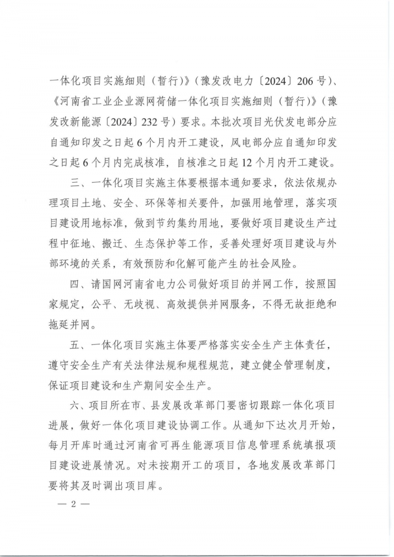 本次共53個(gè)項(xiàng)目納入實(shí)施范圍,其中,工業(yè)企業(yè)類42個(gè)、增量配電網(wǎng)類2個(gè),農(nóng)村類3個(gè),其他類6個(gè)。本批次項(xiàng)目光伏發(fā)電部分應(yīng)自通知印發(fā)之日起6個(gè)月內(nèi)開工建設(shè),風(fēng)電部分應(yīng)自通知印發(fā)之日起6個(gè)月內(nèi)完成核準(zhǔn),自核準(zhǔn)之日起12個(gè)月內(nèi)開工建設(shè)。