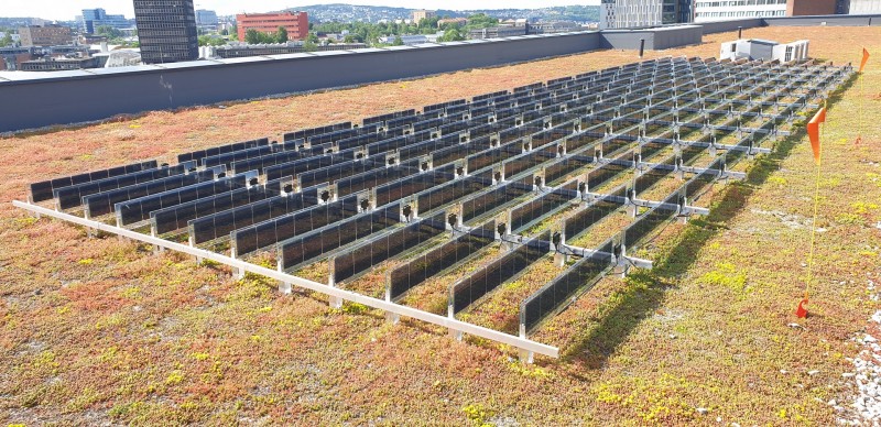 早在2022年,挪威的一家垂直光伏系統(tǒng)供應(yīng)商Over Easy Solar就已完成了第一個將其垂直太陽能組件技術(shù)用于屋頂應(yīng)用的試點項目。據(jù)其首席執(zhí)行官Trygve Mongstad表示,“我們選擇的朝向使得上午11點左右達到峰值,下午7點左右再次達到峰值”。繼這項安裝在學(xué)校的垂直光伏系統(tǒng)試點成功之后,第二階段于2023年夏季安裝完畢,目前,該項目總裝機容量為46kWp,覆蓋學(xué)校約500平方米的屋頂。