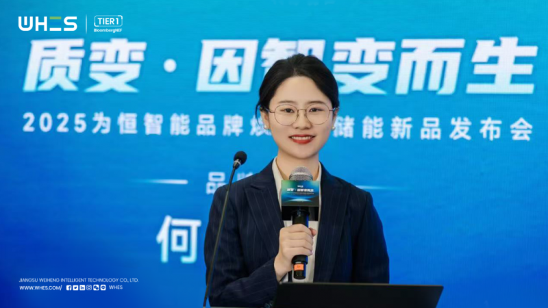 發(fā)布會上,為恒智能市場總監(jiān)何嘉儀詳細解讀了全新品牌 LOGO 設(shè)計理念。新 LOGO WHES 以 “WH” 為基礎(chǔ),巧妙融入 “E” 元素。“E” 的三橫分別象征著為恒智能對地球(EARTH)的責(zé)任、對能源(ENERGY)的深刻洞察以及對成為行業(yè)專家(EXPERT)的不懈追求。溫暖綠、天空藍、科技藍三種色彩賦予 “E” 豐富內(nèi)涵,分別體現(xiàn)人文關(guān)懷、未來愿景與科技創(chuàng)新精神。最后的 “S” 代表為全球用戶提供高效穩(wěn)定的儲能(STORAGE)方案,將可持續(xù)發(fā)展(SUSTAINABILITY)理念貫穿始終,通過智能(SMART)系統(tǒng)與技術(shù),賦能全球家庭與城市。