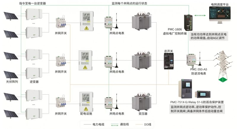 CET-7320-B控制終端與PMC-350-A5防逆流電表配合,采集光伏與電網(wǎng)公共連接點的實時功率,產(chǎn)品內(nèi)置的AGC智能算法可以實時跟蹤負(fù)荷變化,動態(tài)調(diào)節(jié)逆變器的有功功率輸出,既達(dá)到防逆流的目的,又兼顧了發(fā)電效益,使得光伏在不切斷的情況下,應(yīng)發(fā)盡發(fā)。