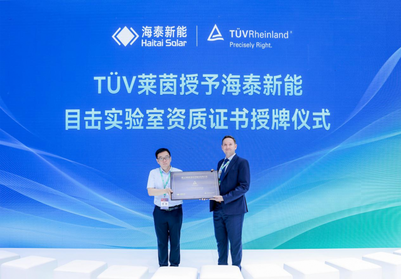海泰新能國家級CNAS實驗室具備紫外、鹽霧、冰雹沖擊等各種測試能力,可按照ISO/IEC17025標準開展檢測服務,提供中國認可、國際互認的測試報告,產(chǎn)品在熱循環(huán)、PID衰減、LeTID等嚴苛測試中表現(xiàn)優(yōu)異。多項權(quán)威認證體現(xiàn)了海泰新能在制造和檢測方面的專業(yè)實力。