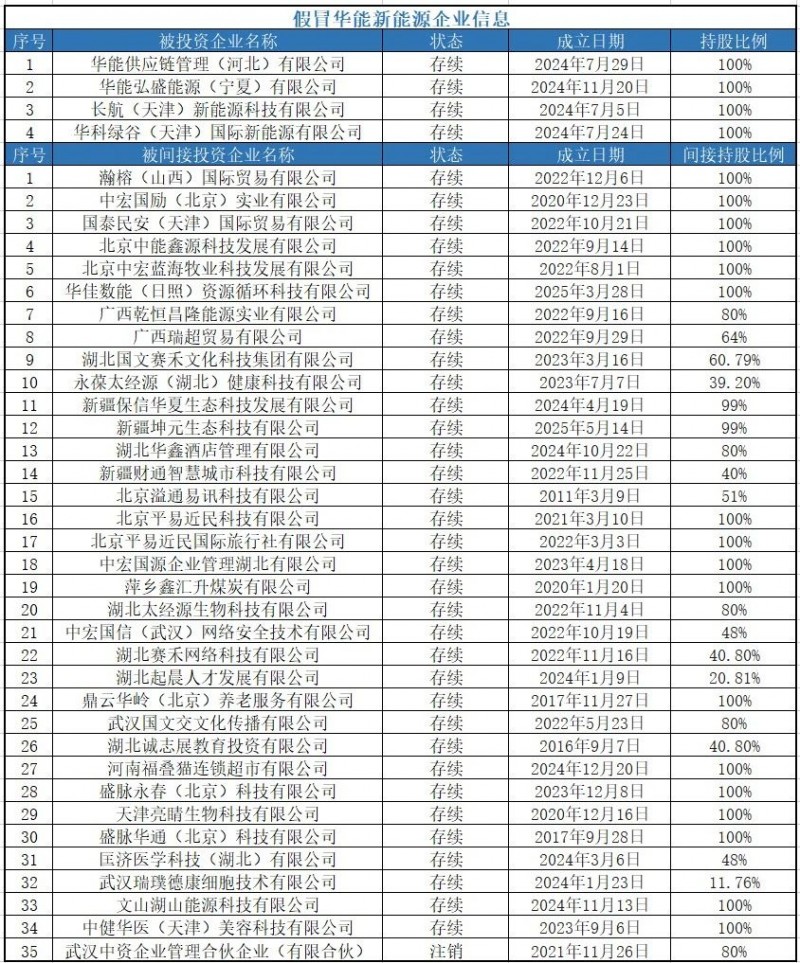 假冒華能新能源企業(yè)信息名單