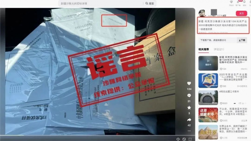 今年6月,網(wǎng)傳“沙雅縣有1GW光伏產(chǎn)業(yè)”向外部進行分標段招標的信息,引發(fā)社會廣泛關(guān)注。經(jīng)沙雅縣發(fā)展和改革委員會核實,該招標信息為不實信息。
