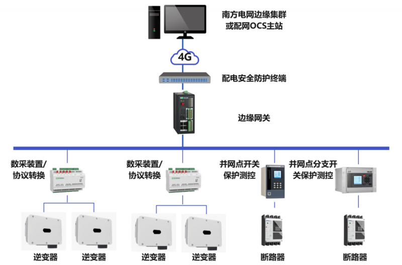嚴(yán)格響應(yīng)國(guó)家能源局“四可”政策規(guī)定,根據(jù)管理規(guī)定及技術(shù)規(guī)范排查,現(xiàn)場(chǎng)具備自動(dòng)化開關(guān)和測(cè)控裝置,需要配置邊緣網(wǎng)關(guān)、數(shù)采裝置/協(xié)議轉(zhuǎn)換、配電安全防護(hù)裝置。