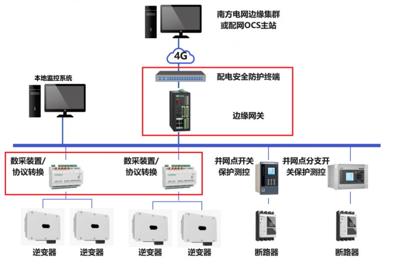 部分分布式光伏項(xiàng)目現(xiàn)場(chǎng)未配置自動(dòng)化設(shè)備,未實(shí)現(xiàn)調(diào)度直采,為響應(yīng)南方電網(wǎng)公司關(guān)于中壓分布式光伏“調(diào)度直采直控”技術(shù)規(guī)范要求,根據(jù)管理規(guī)定及技術(shù)規(guī)范排查,現(xiàn)場(chǎng)不具備任何自動(dòng)化設(shè)備的情形,需要配置并網(wǎng)點(diǎn)測(cè)控裝置、邊緣網(wǎng)關(guān)、數(shù)采裝置/協(xié)議轉(zhuǎn)換、配電安全防護(hù)裝置。