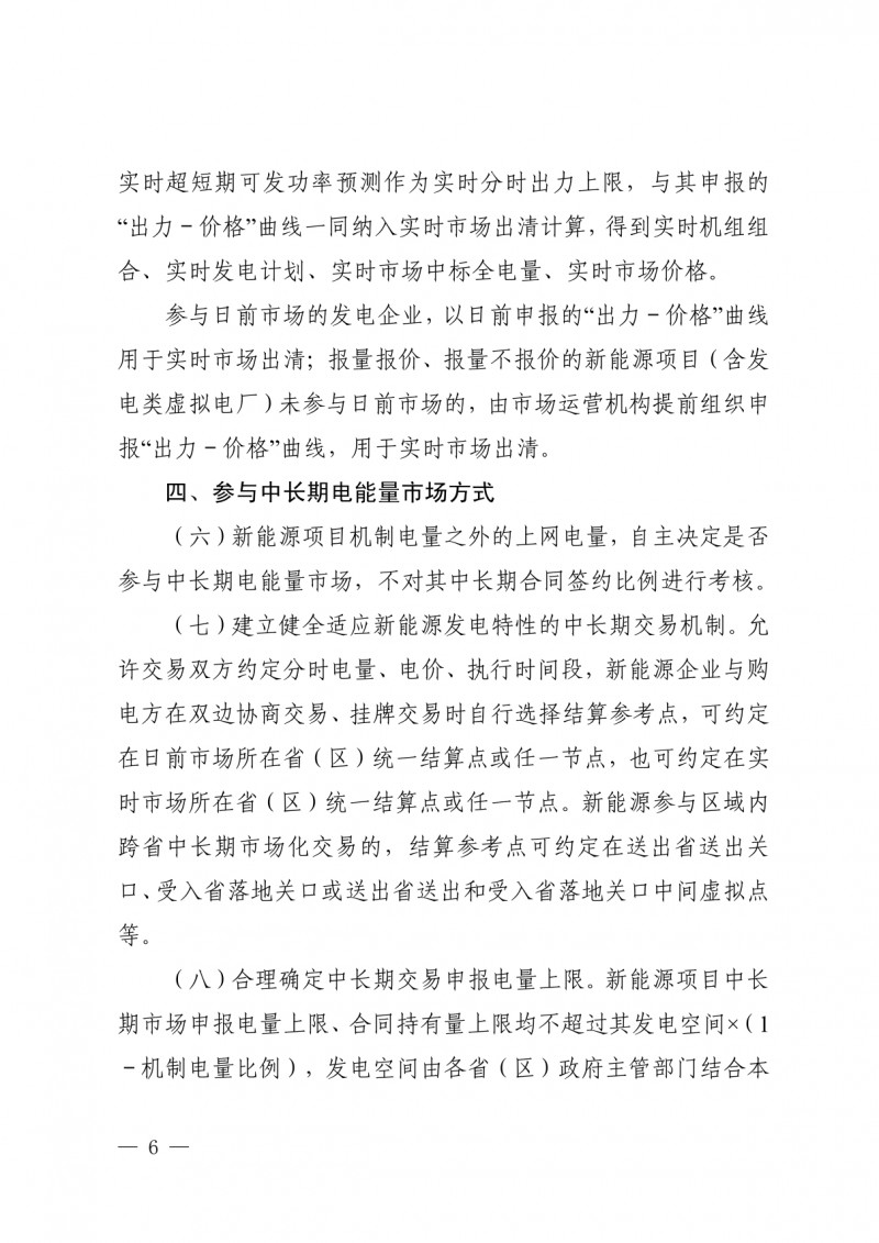 中長(zhǎng)期市場(chǎng)中,新能源項(xiàng)目機(jī)制電量之外的上網(wǎng)電量,自主決定是否參與中長(zhǎng)期電能量市場(chǎng),不對(duì)其中長(zhǎng)期合同簽約比例進(jìn)行考核。