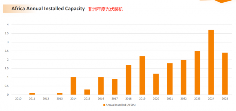 2025年中國(guó)對(duì)非洲的太陽(yáng)能出口逆勢(shì)增長(zhǎng)了17%,而同期對(duì)全球其他地區(qū)的出口則有所下滑。這使得非洲自疫情以來(lái),成為全球增長(zhǎng)最快的三大太陽(yáng)能市場(chǎng)之一。