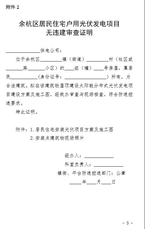 2.余杭區(qū)居民住宅戶用光伏發(fā)電項目無違建審查證明