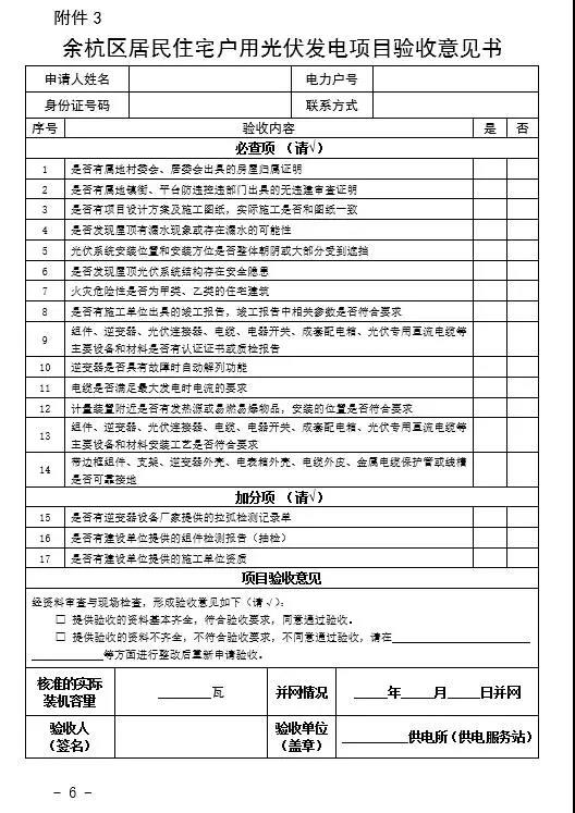 3.余杭區(qū)居民住宅戶用光伏發(fā)電項目驗收意見書