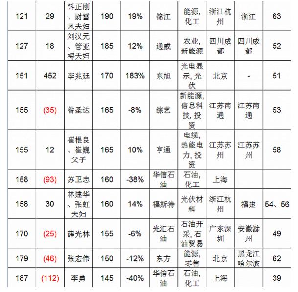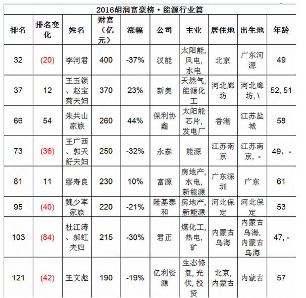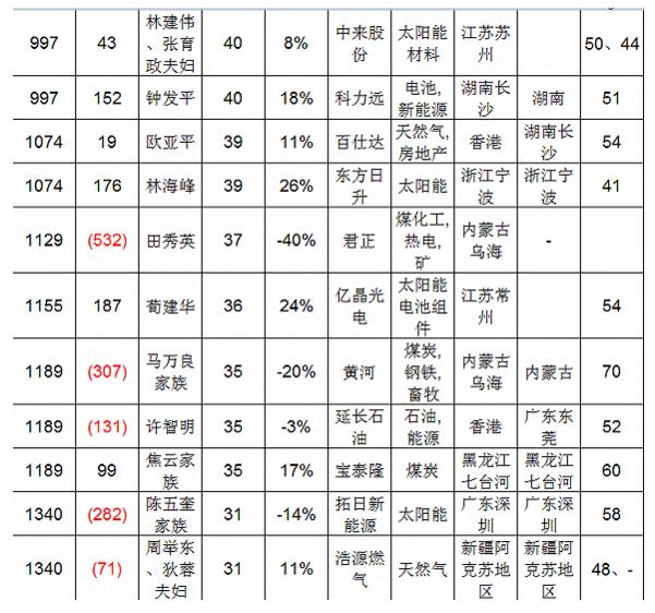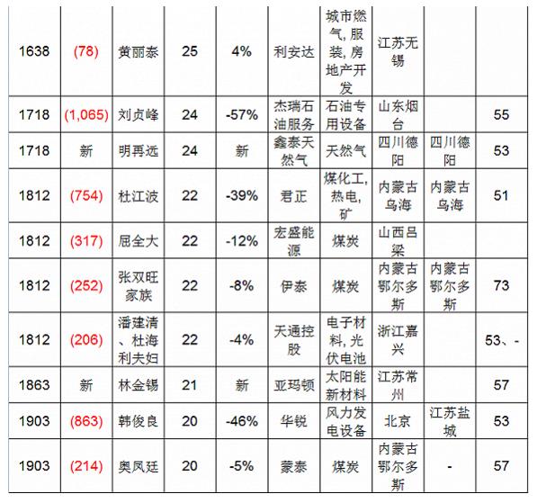 涉及到能源行業(yè),也是生產(chǎn)大富豪的高產(chǎn)區(qū)。榜單顯示,能源行業(yè)共有81位企業(yè)家榮登榜單: