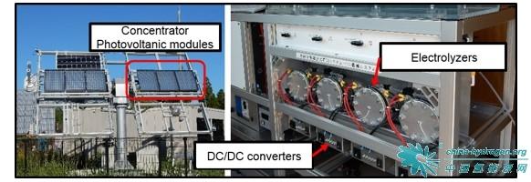 研究人員利用宮崎大學(xué)開發(fā)的高效聚光光伏電池(輸出功率為470 W)成功的電解了水,以18.8%的效率將太陽能(日平均值)轉(zhuǎn)換為氫能,這是室外實驗中實際系統(tǒng)所達到的最高效率。
