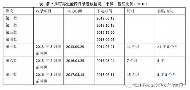 表.前7批可再生能源目錄發(fā)放情況(來源:智匯光伏,2018)